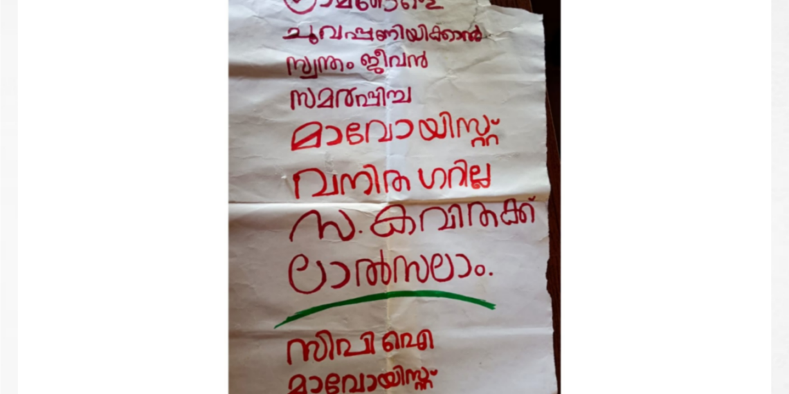കവിത കൊല്ലപ്പെട്ടതായി മാവോയിസ്റ്റ് പോസ്റ്റർ.